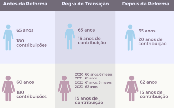 As mulheres precisam atingir 62 anos e os homens 65, além de manter os 15 anos de contribuição mínima.