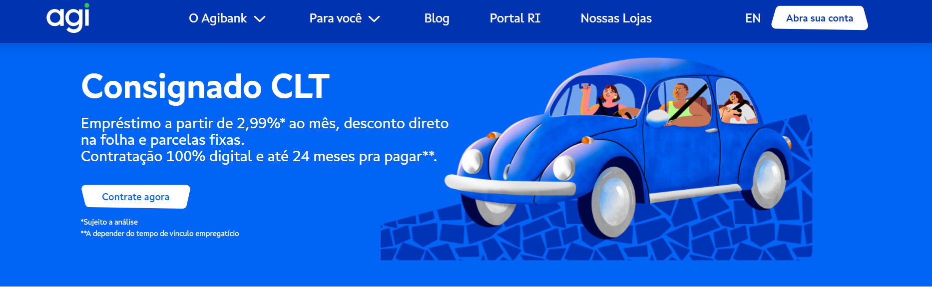 Apesar de oferecer ótimas condições, o empréstimo consignado CLT do Agibank não está disponível para negativados, pois a instituição faz análise de crédito antes da liberação.