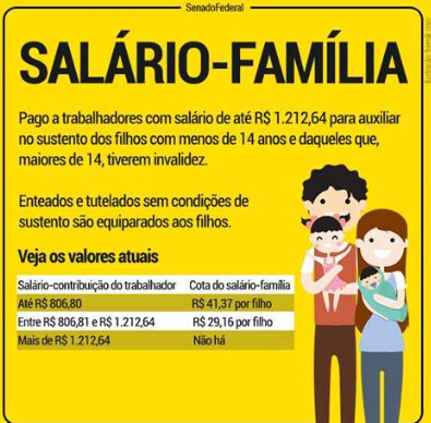 Importante saber: A cada ano, o governo atualiza os valores de renda para o salário-família. Além disso, é necessário apresentar a certidão de nascimento da criança e o comprovante de vacinação e escolaridade todo ano para continuar recebendo o benefício.