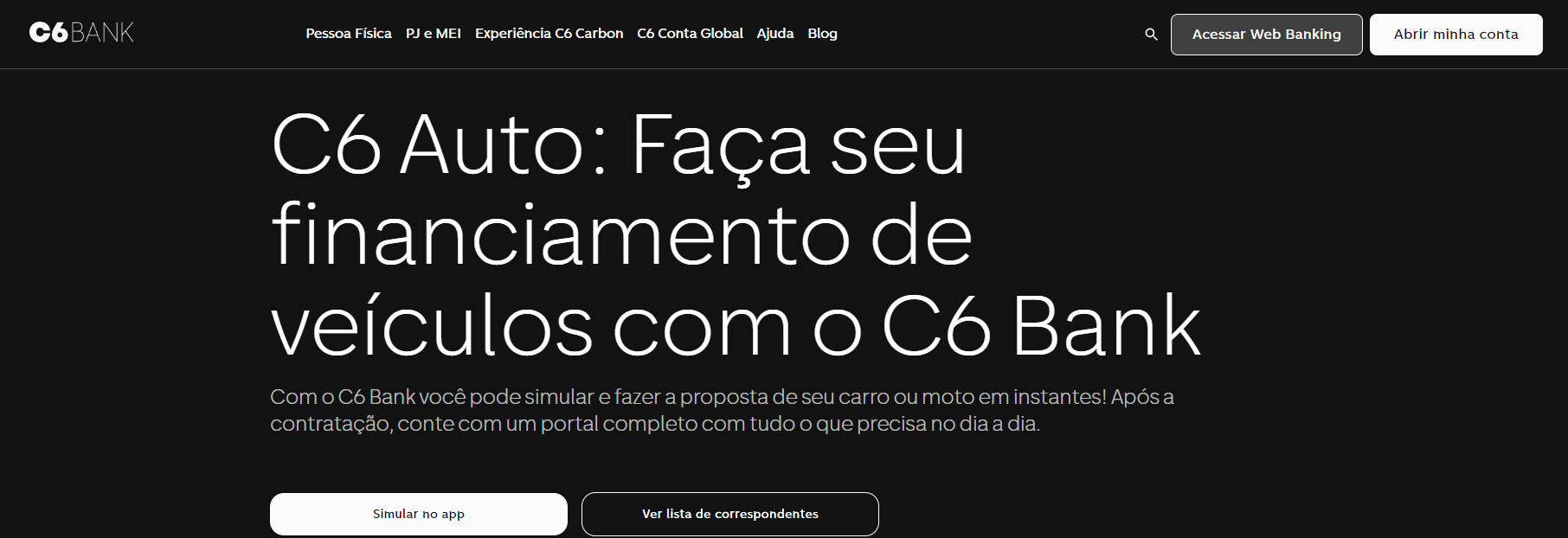 O C6 Bank é uma ótima opção para quem quer agilidade e praticidade no financiamento.