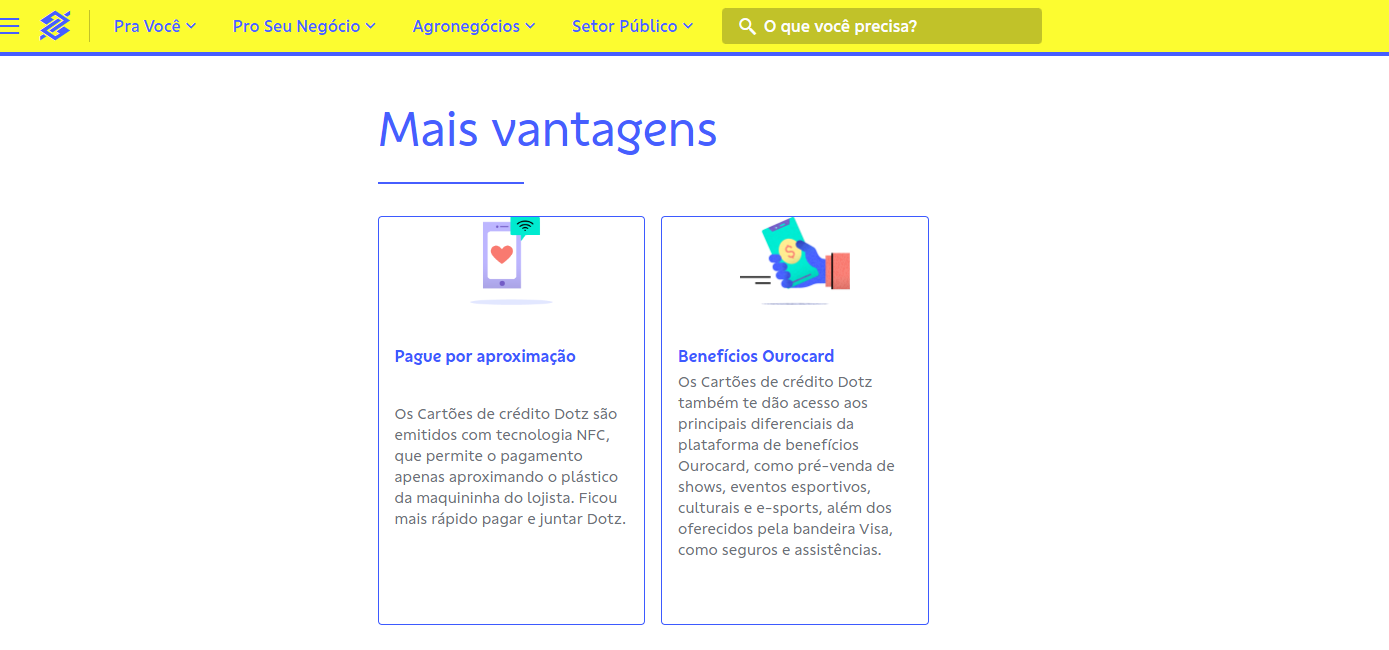 Eu possuo o Cartão BB Dotz Visa Internacional e posso destacar que a principal vantagem é o programa de recompensas.