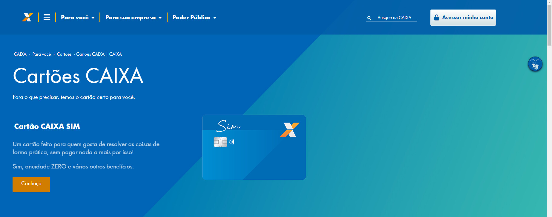 Com a conta aberta, você pode solicitar o Cartão de Crédito Caixa Sim diretamente pelo aplicativo Caixa ou no site do banco.