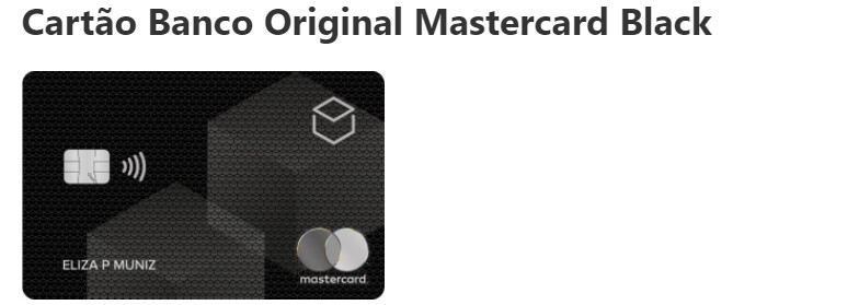 Tudo bem? O Original Black é um cartão de crédito premium do Banco Original e, como você mencionou, ele é bastante exclusivo, aqui estão alguns pontos chave sobre ele:
