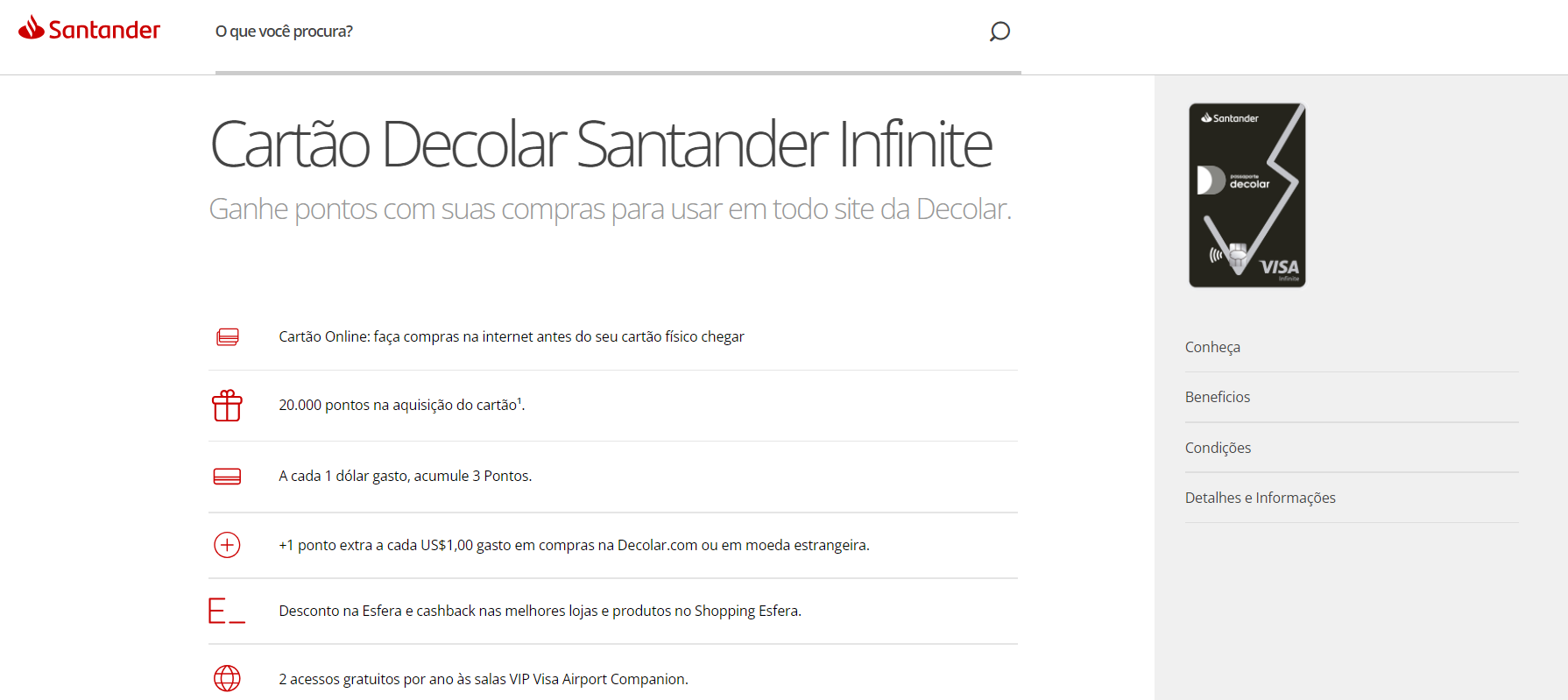 Bom dia, gostaria de saber se alguém já utilizou o cartão Decolar Santander Infinite e se pode me dar algum feedback sobre ele. Estou querendo utilizar para comprar uma passagem aérea e gostaria de saber se vale a pena.