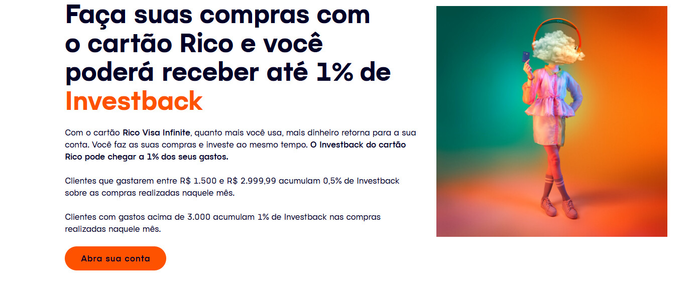 Pessoal, o Cartão Rico Visa Infinite pode ser uma ótima escolha. O Investback, que envolve até 1% dos gastos em forma de investimento, é um grande atrativo, especialmente para quem já investe ou quer começar a investir de maneira simples.