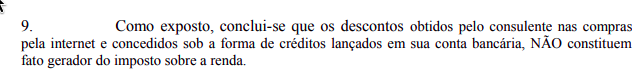 O cashback que você recebe por compras rotineiras (em apps, cartão de crédito, lojas parceiras etc.) não precisa ser declarado no IR porque a Receita entende que isso não é um ganho novo, é só uma parte do que você já pagou voltando pra você. Olha só o que disseram na Solução de Consulta n. 653/2017: