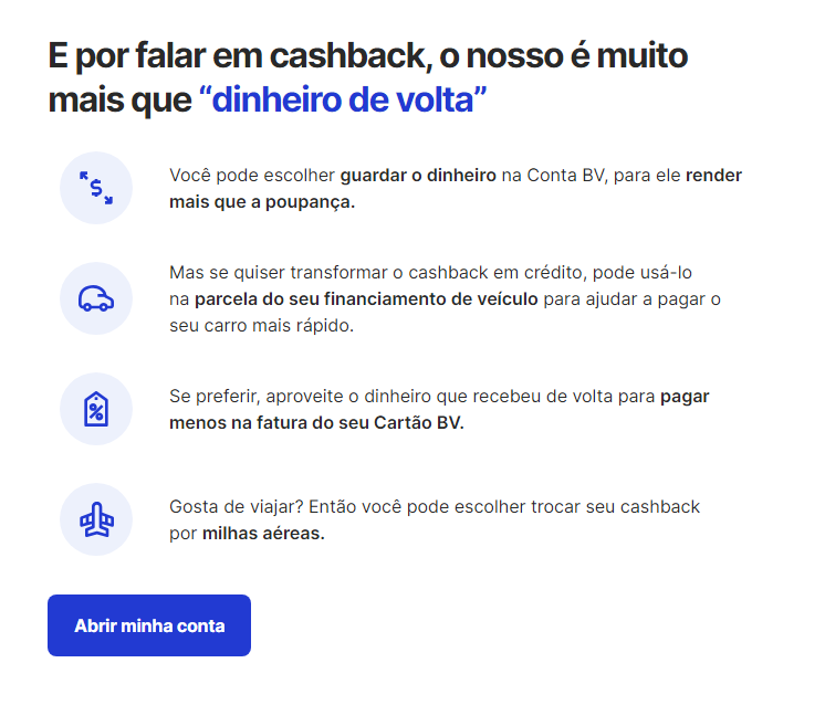 Oi! Para abrir a conta no Banco BV , baixa o app deles, preenche seus dados e pronto. Bem simples!