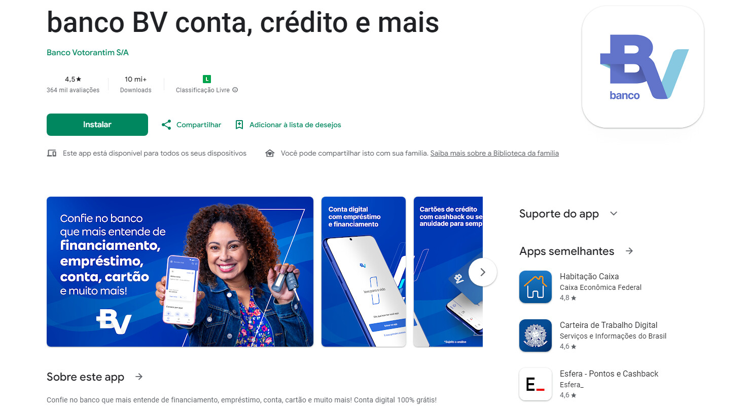 Abrir uma conta no Banco BV é super simples. Primeiro, você precisa baixar o app do Banco BV no seu celular, disponível tanto para Android quanto para iOS .