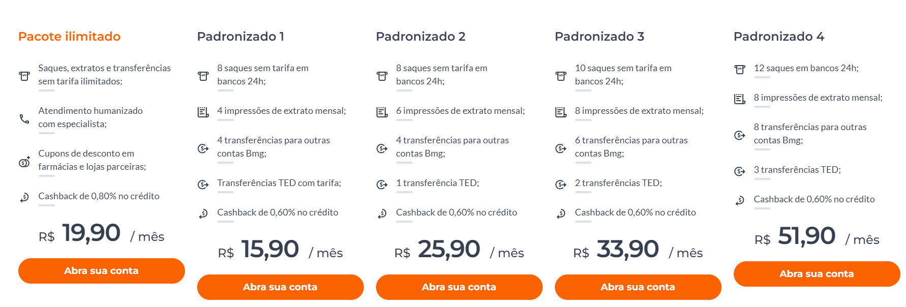 Eu abri minha conta no BMG seguindo os passos que colocaram aí em cima, foi bem simples e a aprovação foi bem rápida! Eu escolhi entre os planos:
