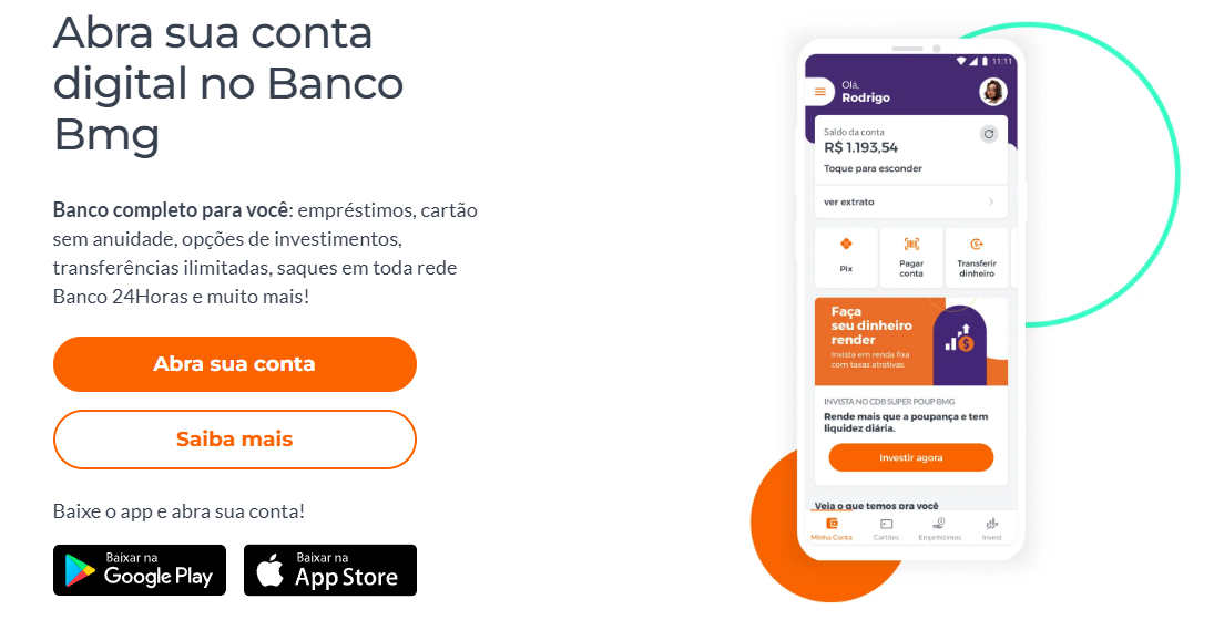 Para abrir uma conta digital Bmg tenha em mãos seu RG ou CNH, comprovante de endereço e dados pessoais. Você pode abrir a conta digital Bmg através do site ou pelo aplicativo do Google Play ou Appstore.