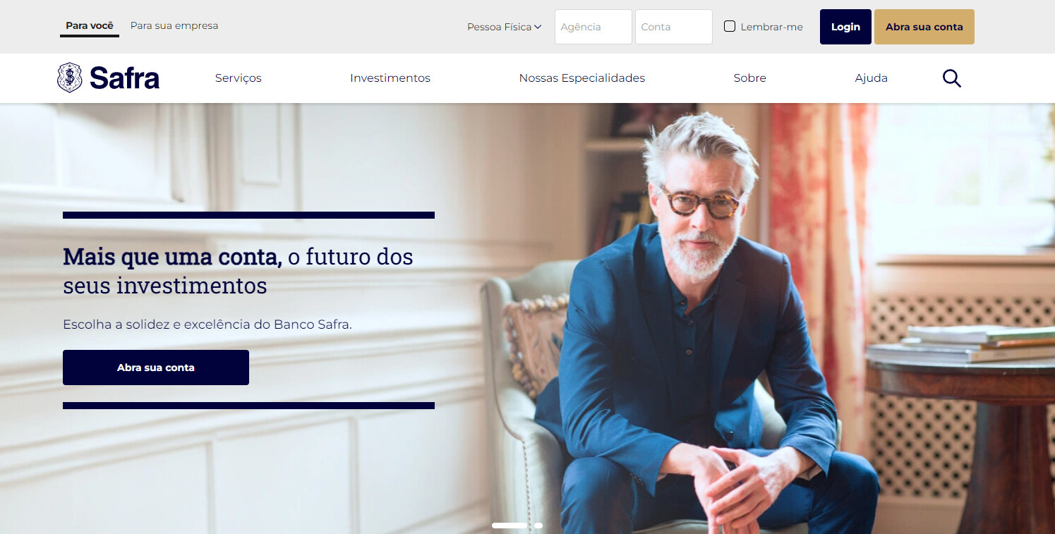 O Banco Safra tem taxas competitivas e várias opções de investimentos, o que é ótimo se você está começando a investir.