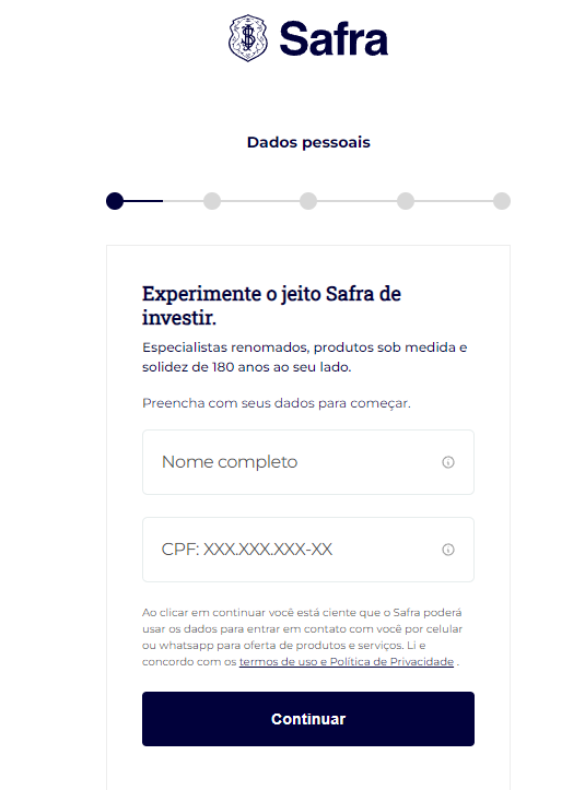 Você pode abrir uma conta no Banco Safra tanto online quanto na agência. Pelo site, é bem simples: preenche o formulário com seus dados, envia foto do RG ou CNH e uma selfie com o documento.