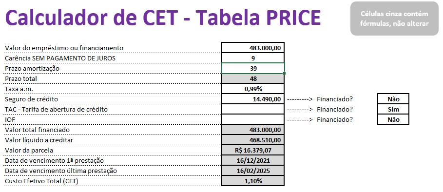 - Adicione todas as taxas e encargos adicionais ao empréstimo, incluindo Taxa de Abertura de Crédito (TAC), custos de seguro e IOF.