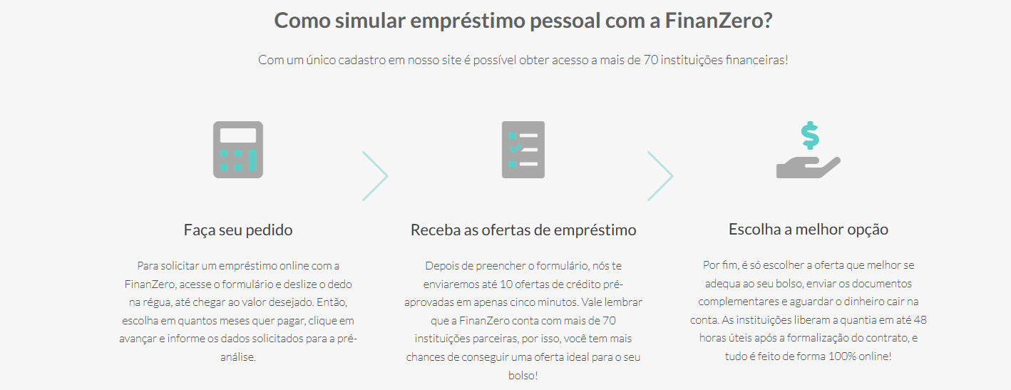 Depois, basta acessar, comparar grátis as ofertas disponíveis para o seu perfil, escolher e solicitar o seu empréstimo. Após aprovado, o dinheiro cai direto na sua conta em até 1 dia útil.