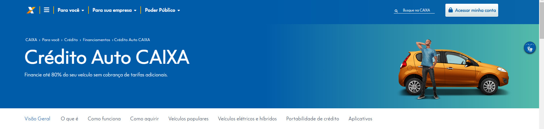 CAIXA : Financiamento para compra de carros e motos novos ou usados, com taxas de juros pré-fixadas.