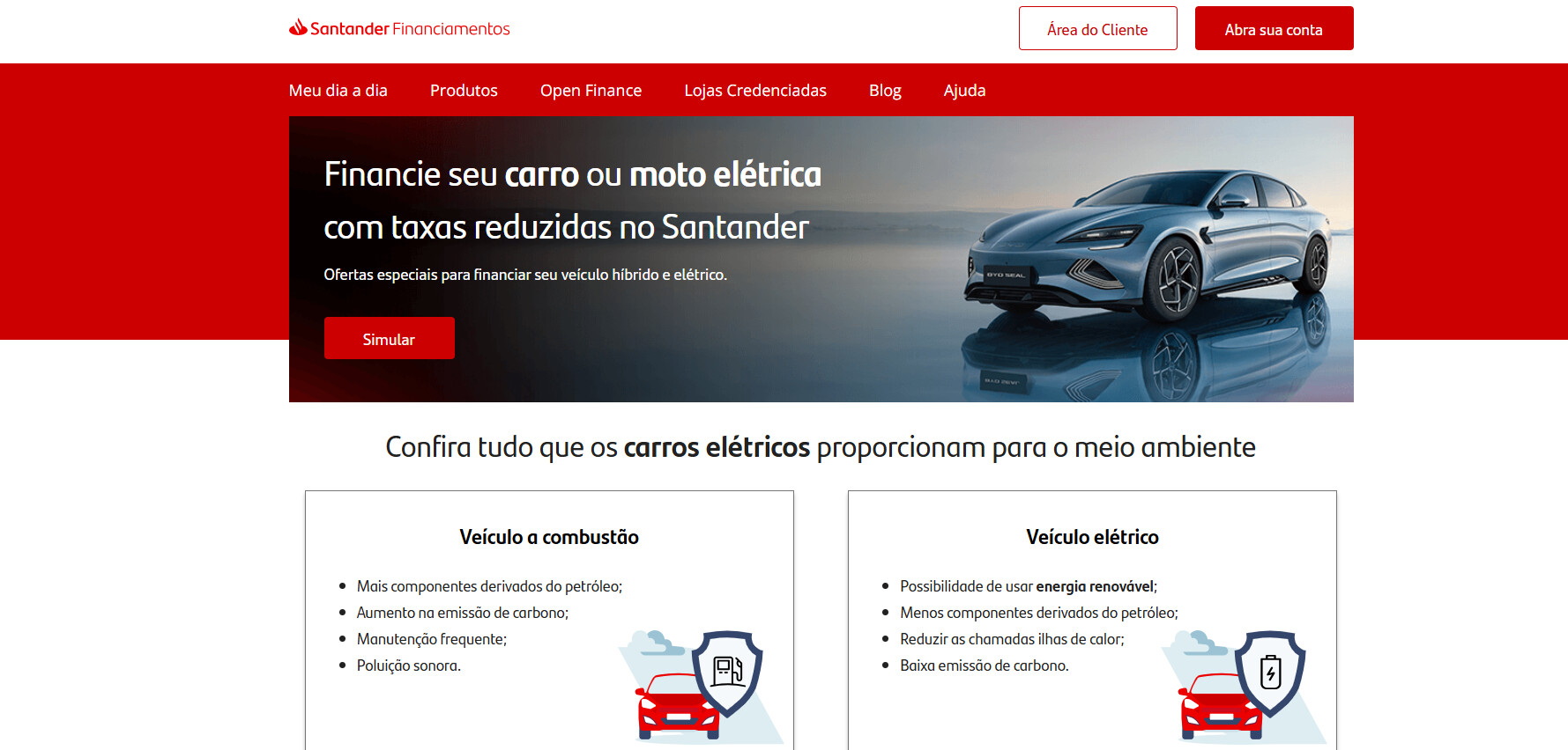Santander : Financiamento com prazo de até 60 parcelas fixas.