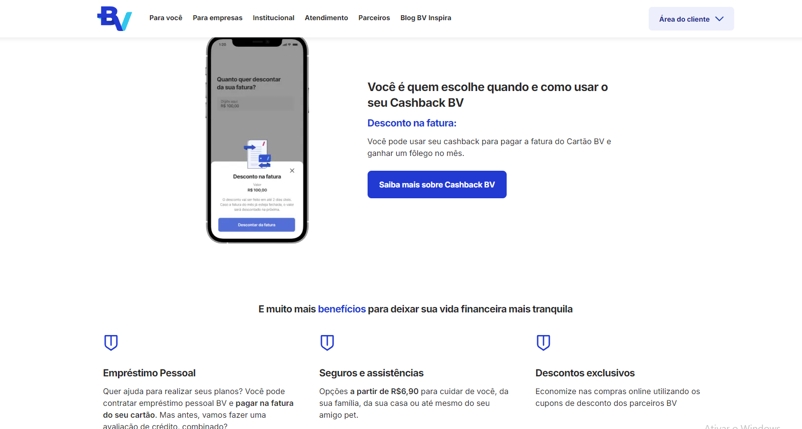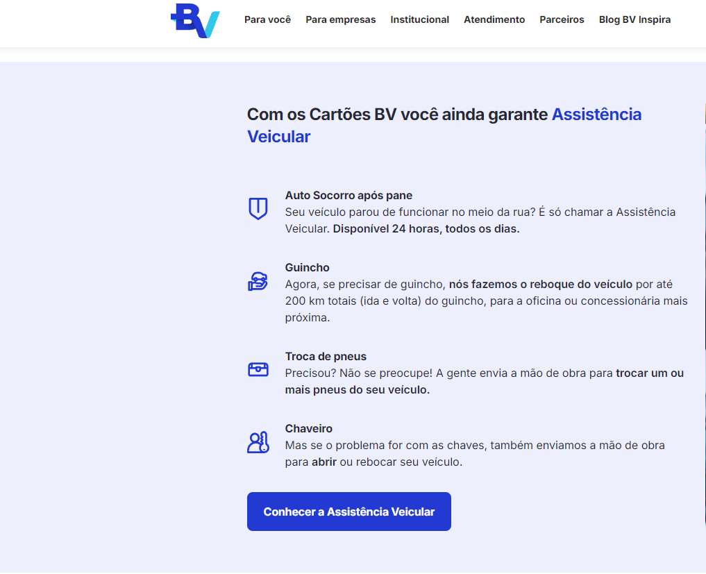 Primeiro, eu entrei no site da BV, que é o caminho mais direto. Lá, você vai encontrar a opção de solicitar o cartão de forma online.