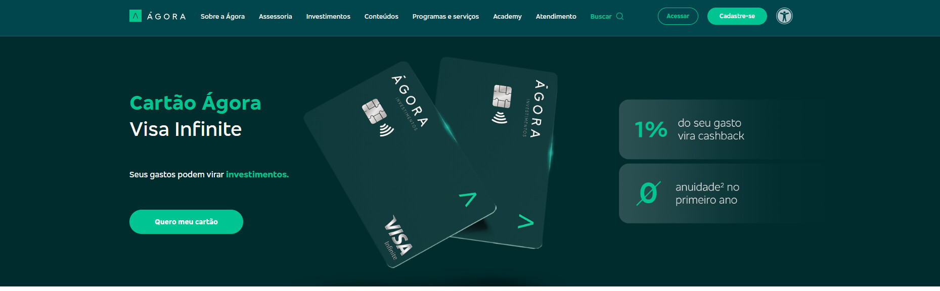 Ele ainda está disponível e continua sendo uma boa opção para quem investe com a corretora. O cartão tem benefícios ligados às operações de investimento e oferece algumas vantagens exclusivas para quem é cliente da Ágora.