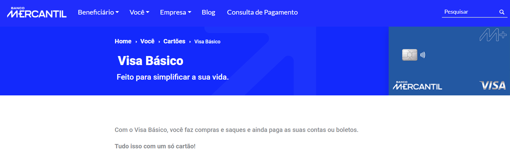 | Escolher o cartão | Localize o cartão visa básico mercantil na seção de cartões de crédito. |