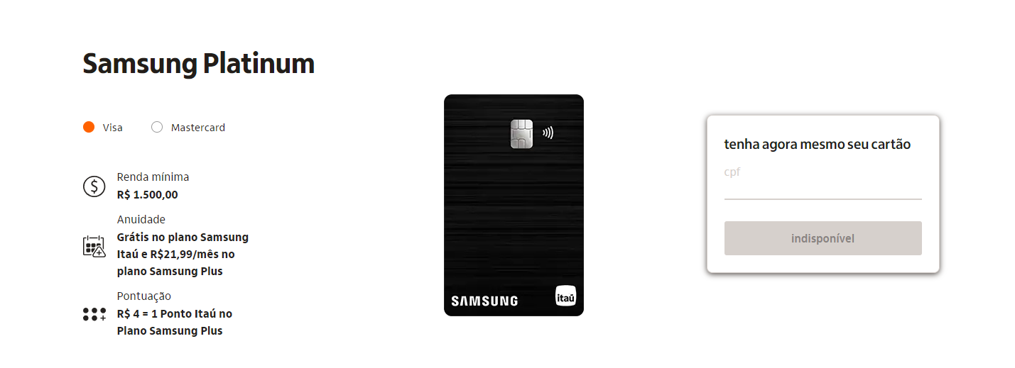 Eu quero saber como conseguir o Cartão de Crédito Samsung Platinum. Eu vi que é um cartão de crédito especial que você pode usar para comprar produtos da Samsung, mas eu não sei como consegui-lo. Alguém pode me explicar?