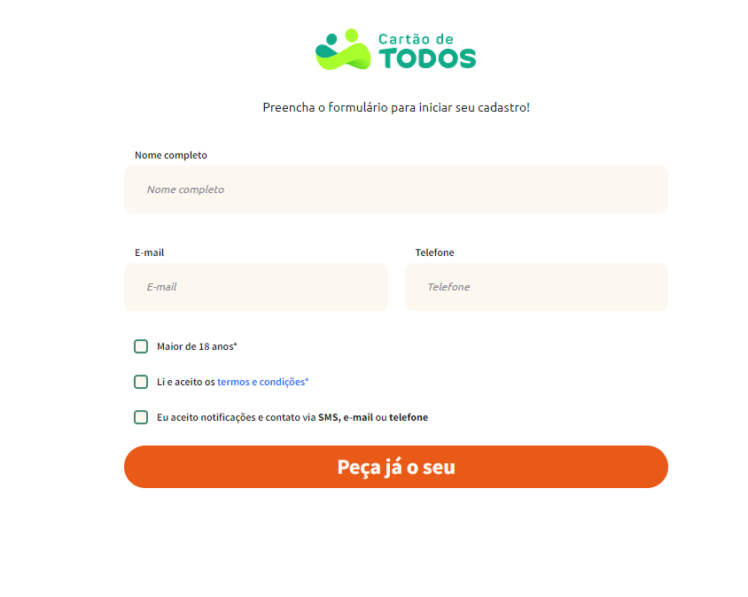 Pra adquirir, o processo é bem simples: você pode entrar no site oficial do Cartão de Todos e preencher um cadastro com seus dados pessoais.