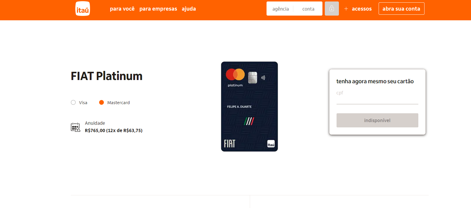 Eu vi que a Fiat oferece um cartão de crédito com vários benefícios, como descontos em compras, parcelamento em até 12 vezes sem juros e acesso a vários eventos. Eu gostaria de saber como posso conseguir o Cartão Fiat Platinum. Alguém já tem esse cartão e pode me dizer como é?