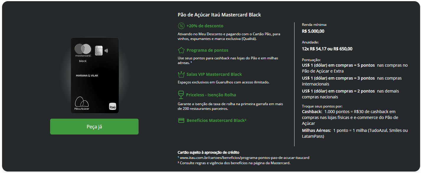 Valeu pelo detalhamento! Já tenho o cartão Pão de Açúcar Itaucard e posso dizer que o processo de solicitação foi bem tranquilo.