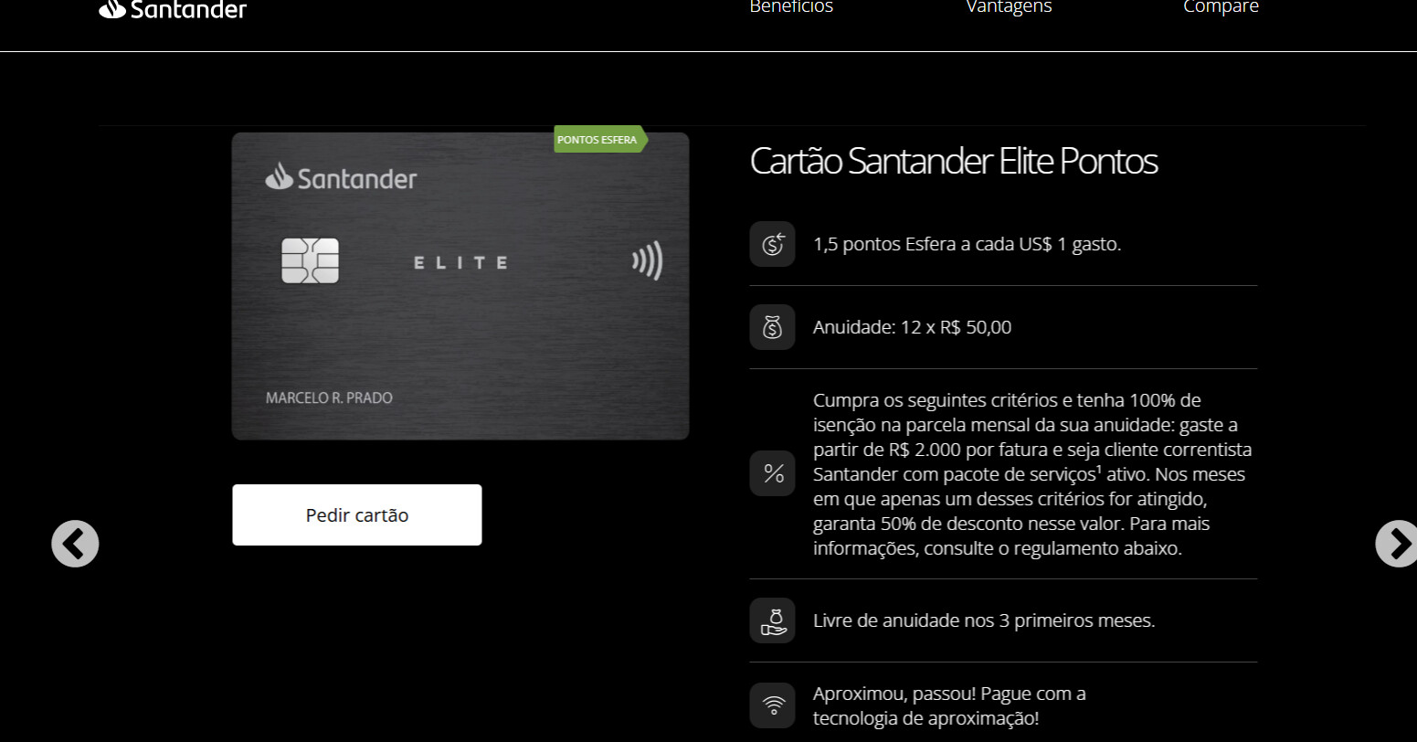 Pessoal, o cartão Santander Elite oferece uma série de vantagens exclusivas para clientes de alta renda.