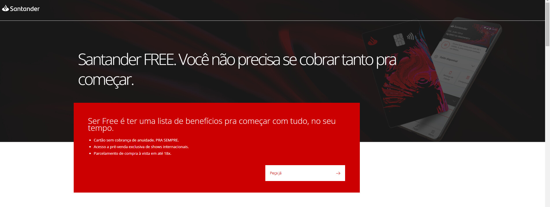 Você pode solicitar o cartão diretamente pelo aplicativo do Santander, que é bem fácil de usar, ou pelo Internet Banking.
