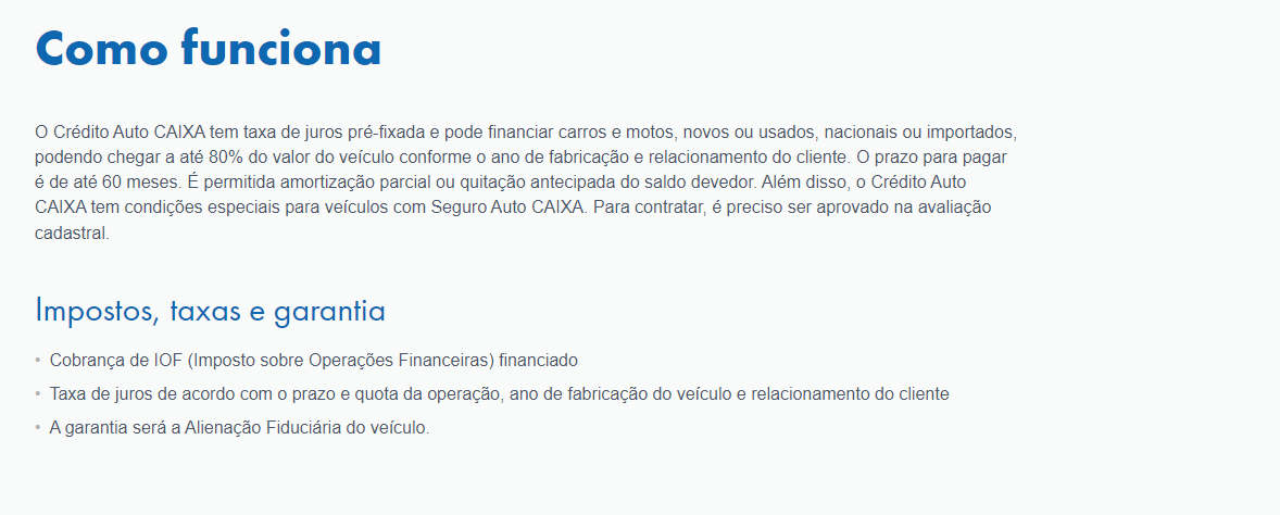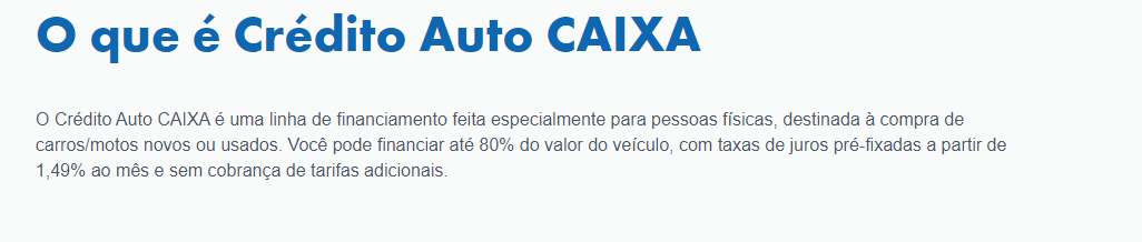 Oi! Eu já usei o Crédito Auto Caixa e posso te explicar como funciona. O Crédito Auto Caixa é uma linha de financiamento voltada para a compra de carros e motos, novos ou usados.
