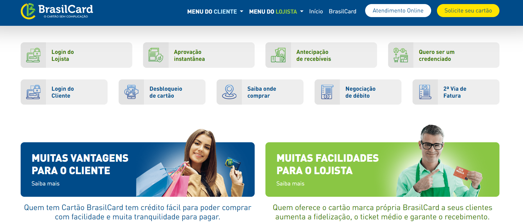 - Acesse www.brasilcard.net e clique em “Atendimento Online”.
