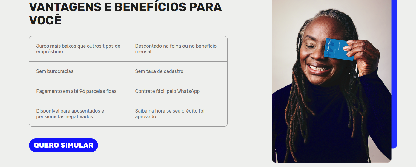 | Como o desconto é direto na folha, os juros são mais baixos que empréstimos comuns. | |
