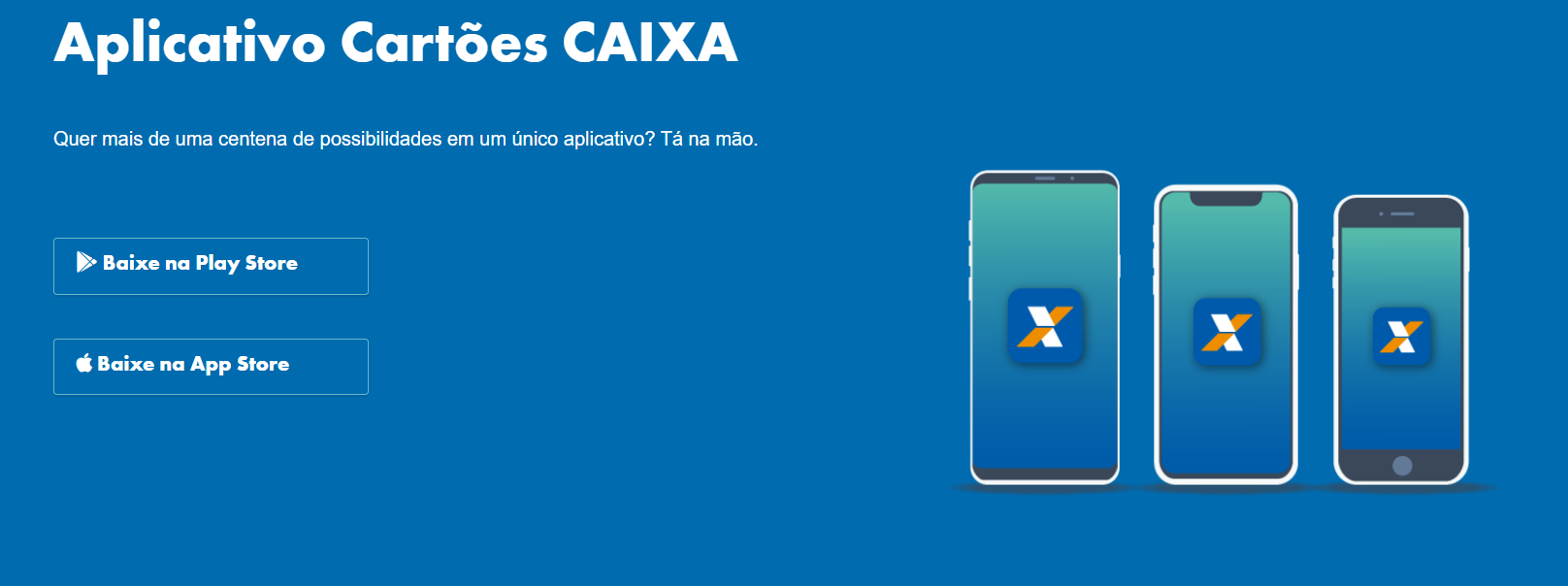 | App Cartões CAIXA | Controle total pelo aplicativo: faturas, limite, pontos, compras internacionais, entre outras funções. |