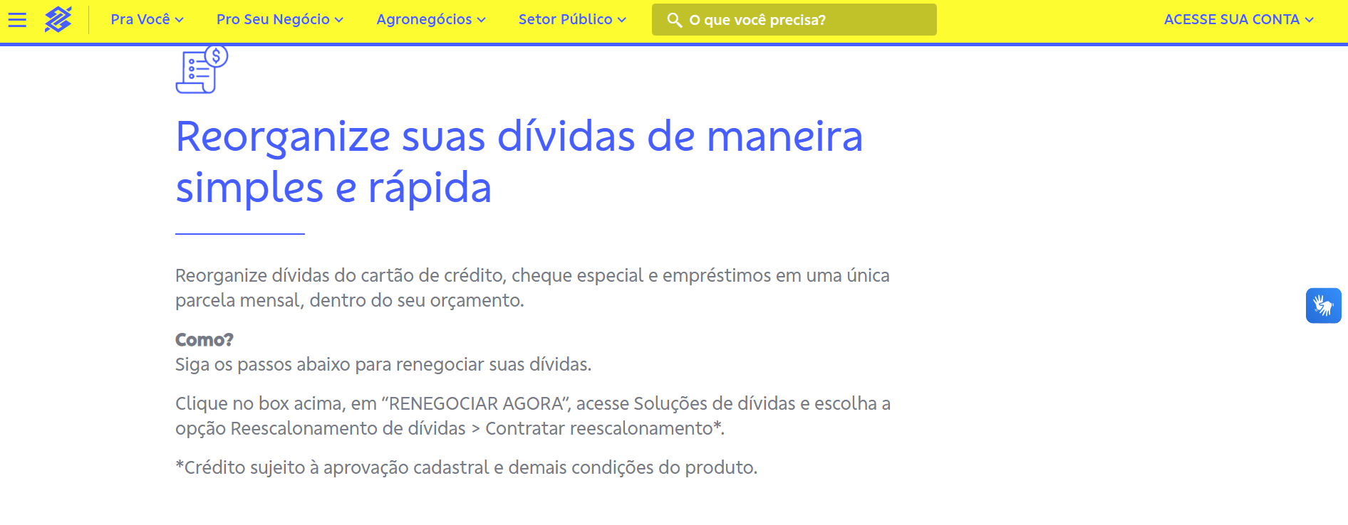 - Site oficial do BB – Entre na sua conta e busque a opção “Soluções de Dívidas”;