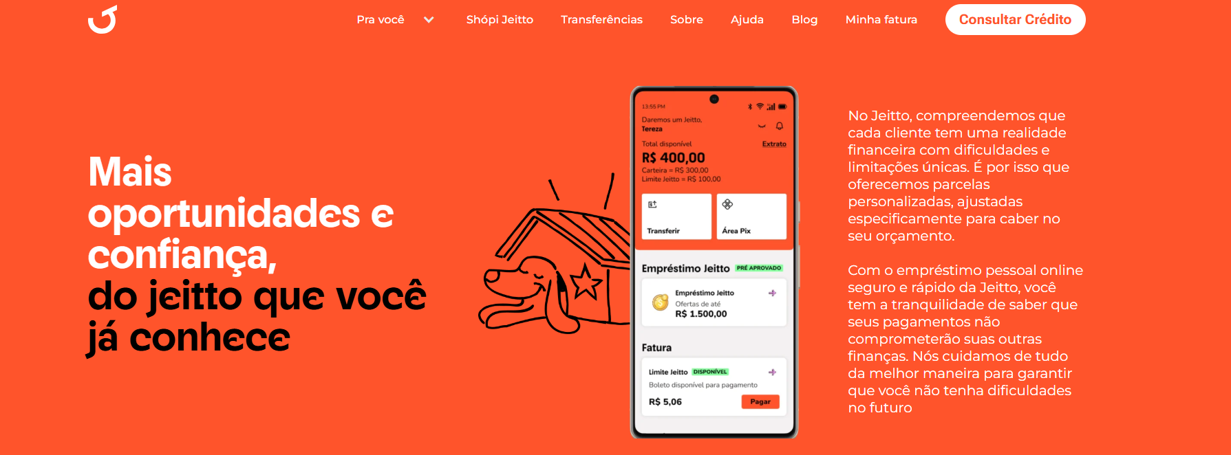 O empréstimo pessoal Jeitto é uma boa pedida se você já está usando o app há um tempo e tem um bom histórico de pagamento. Eles te conhecem aos poucos, e com base no seu comportamento financeiro liberam ofertas sob medida.
