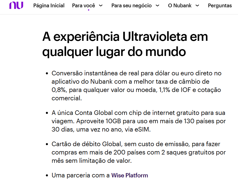 Além disso, é possível pedir o Nubank Ultravioleta diretamente pelo site do Nubank.