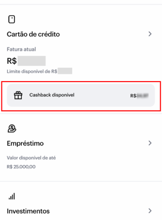 - Em seguida, toque em “Usar cashback” ou em “Resgatar para a conta”.