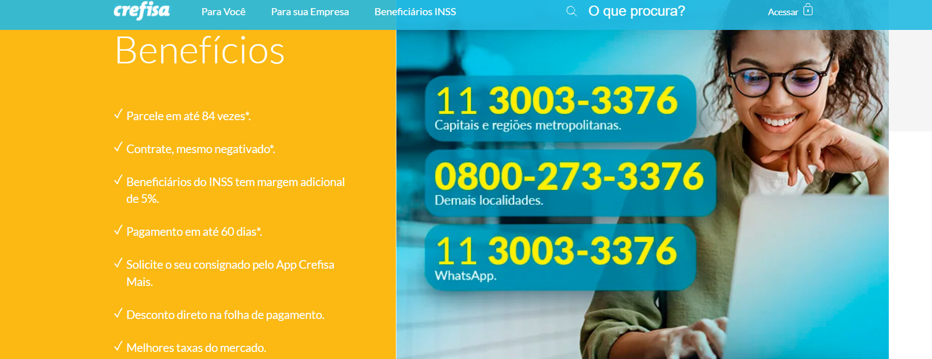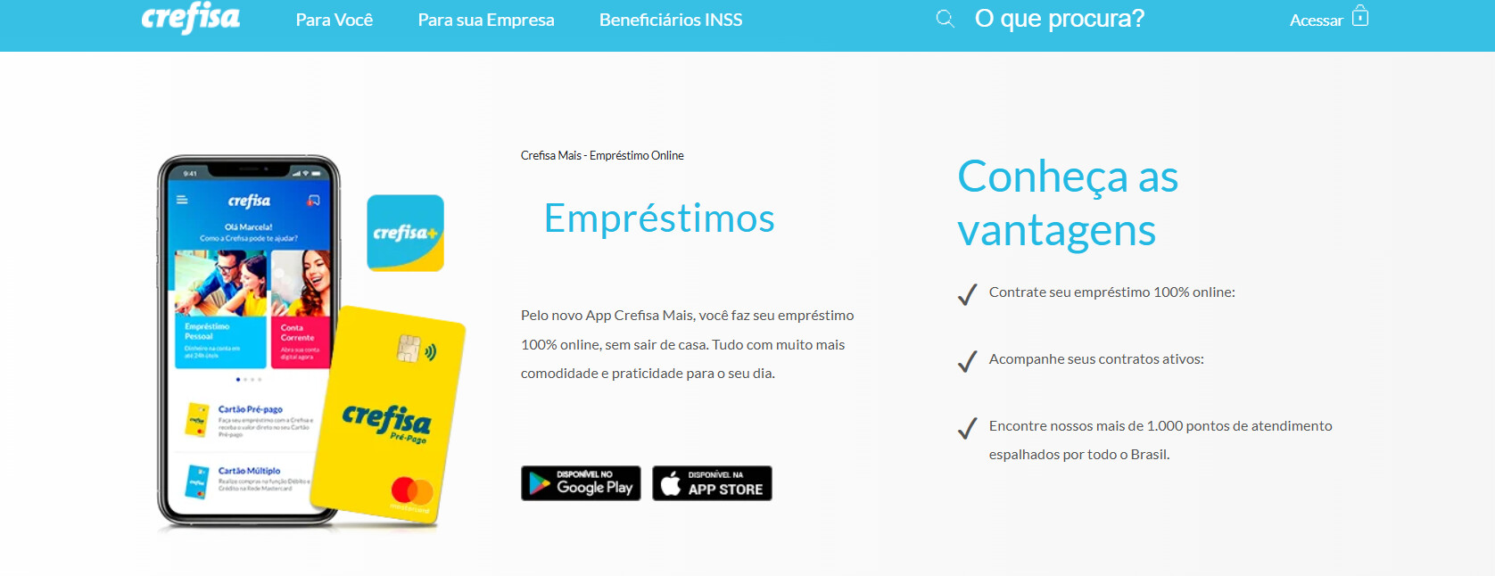 - Acesse o site da Crefisa e clique em “Faça seu empréstimo” no menu principal.