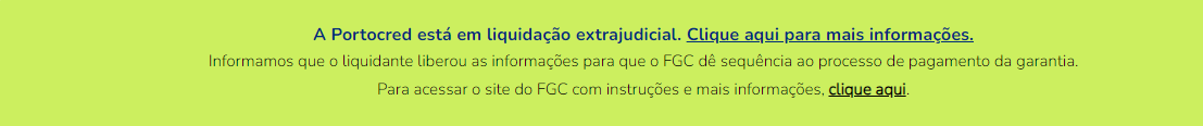 - Detalhes sobre a garantia do FGC para a Portocred: https://www.fgc.org.br/garantia-fgc/pagamento-de-garantia/portocred