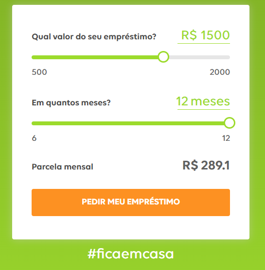 - Simule o empréstimo informando o valor desejado e a quantidade de parcelas que gostaria para pagar (de 6 a 12 meses).