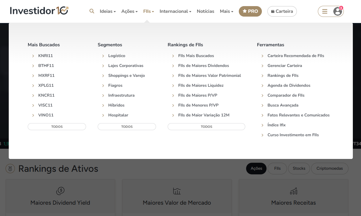 Mas FIIs também têm potencial de valorização e ainda pagam renda mensal. Eu acompanho dados no Investidor10 antes de decidir em quais fundos investir.