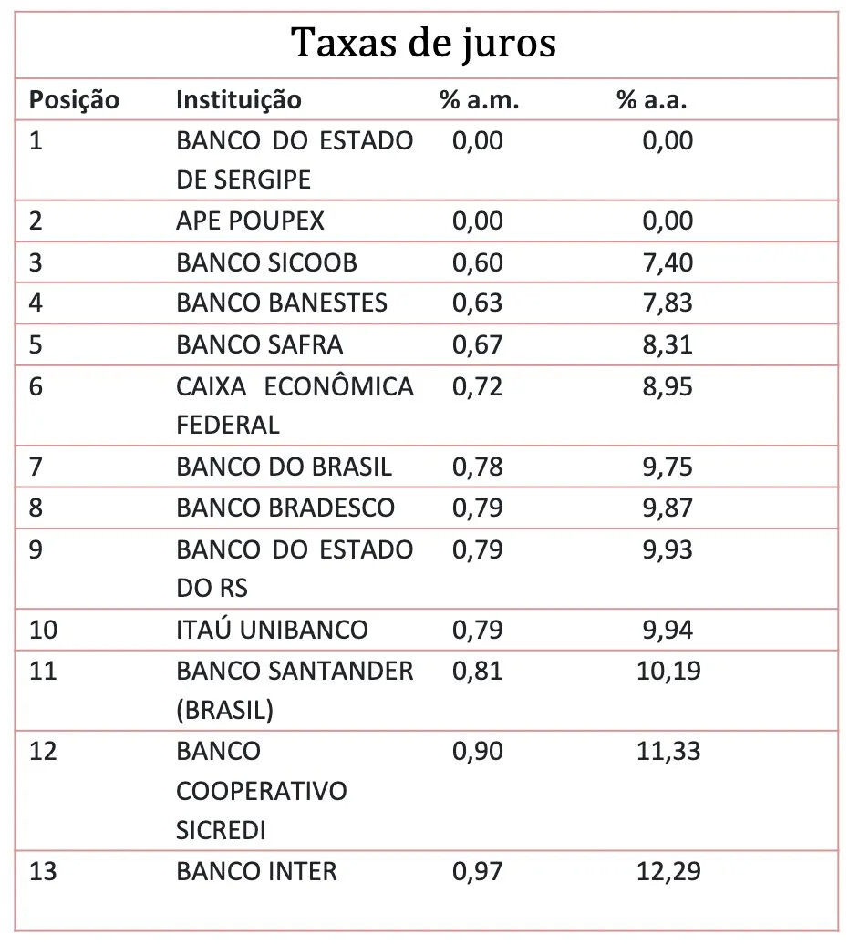 E não podemos esquecer das cooperativas de crédito, como o Sicoob, que apresentam taxas a partir de 7,40% ao ano, representando outra excelente opção para quem busca condições mais vantajosas.