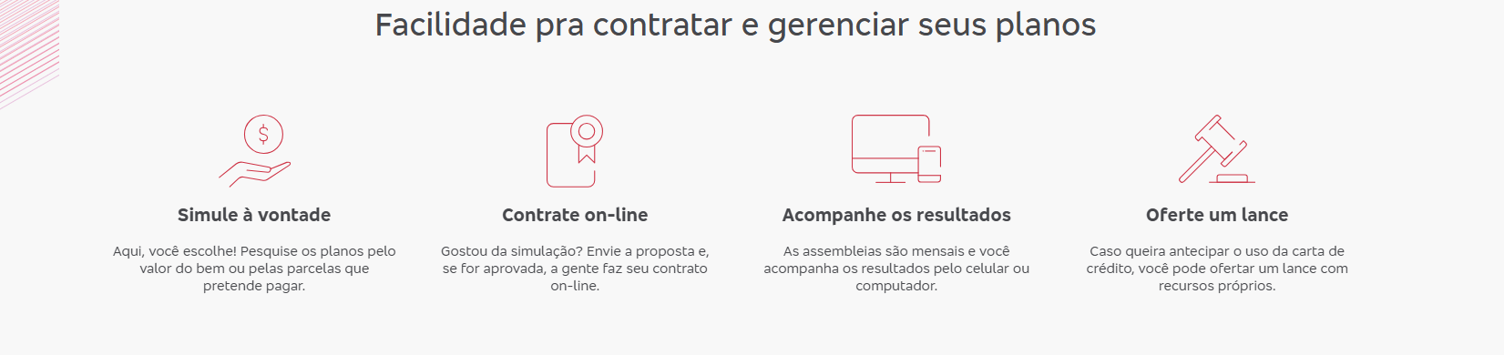 Se quiser, existe ainda a opção do lance embutido, que desconta o valor do lance direto da sua carta de crédito, facilitando a contemplação sem precisar pagar à vista.