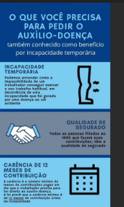 Quando eu consegui o auxílio-doença, foi porque fiquei doente e não podia continuar no meu trabalho, tem uns requisitos básicos: você precisa ter contribuído por pelo menos 12 meses, mas se for acidente de trabalho ou alguma doença grave que esteja na lista do INSS, essa carência pode ser dispensada.