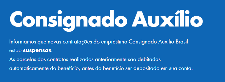 Pessoal, uma atualização importante sobre o crédito consignado pelo Auxílio Brasil. Acabei de ver no site oficial que novas contratações estão suspensas por enquanto.