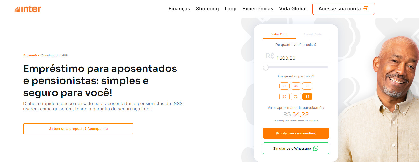 Uma opção que muita gente tem escolhido ultimamente é o Banco Inter. Eles têm o Crédito Consignado INSS com taxas bem competitivas e o prazo de pagamento pode chegar até 84 meses.