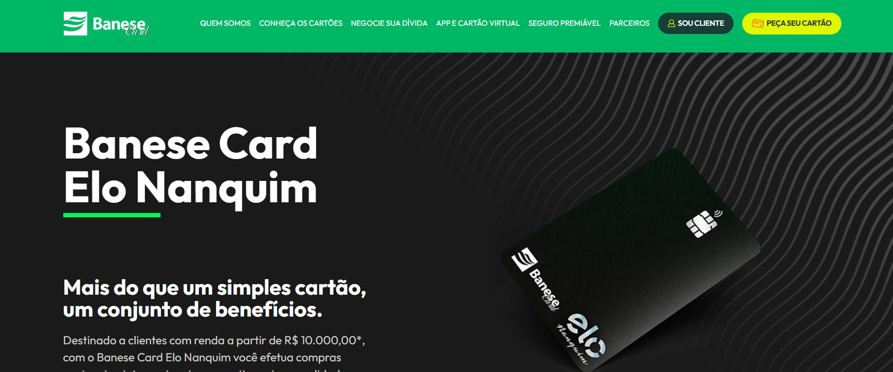 Eu escolhi o Banese Card Elo Nanquim porque ele é mais acessível. A renda mínima é de apenas R$ 10.000,00, e o banco oferece muitos benefícios, como isenção da anuidade no primeiro ano e bônus por faturas altas.