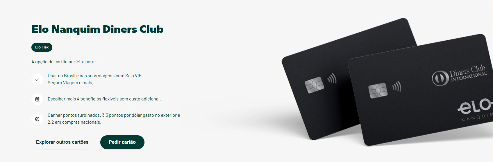 Olá, eu tenho o cartão Elo Nanquim Diners Club do Bradesco e recomendo muito.**