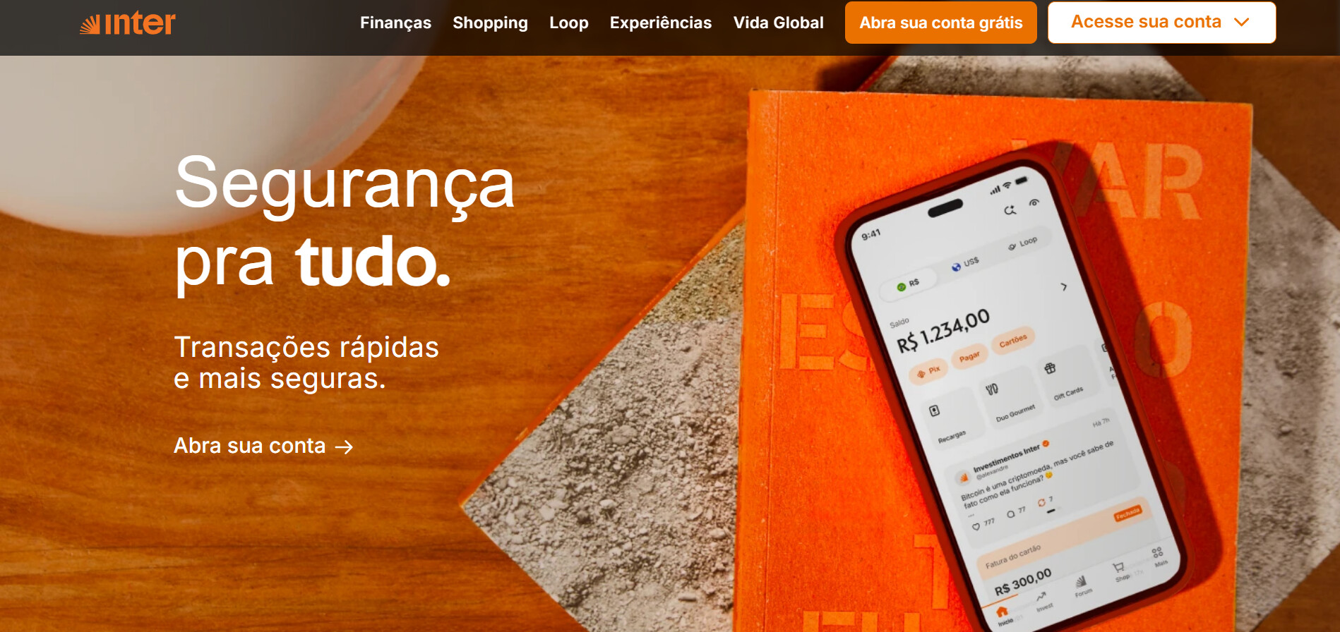 Eu comecei com o Inter porque queria evitar taxas ao máximo. Dá pra fazer praticamente tudo sem pagar nada e isso pesa muito no começo. Fora que o app tem várias funções além da conta, tipo compras com cashback.