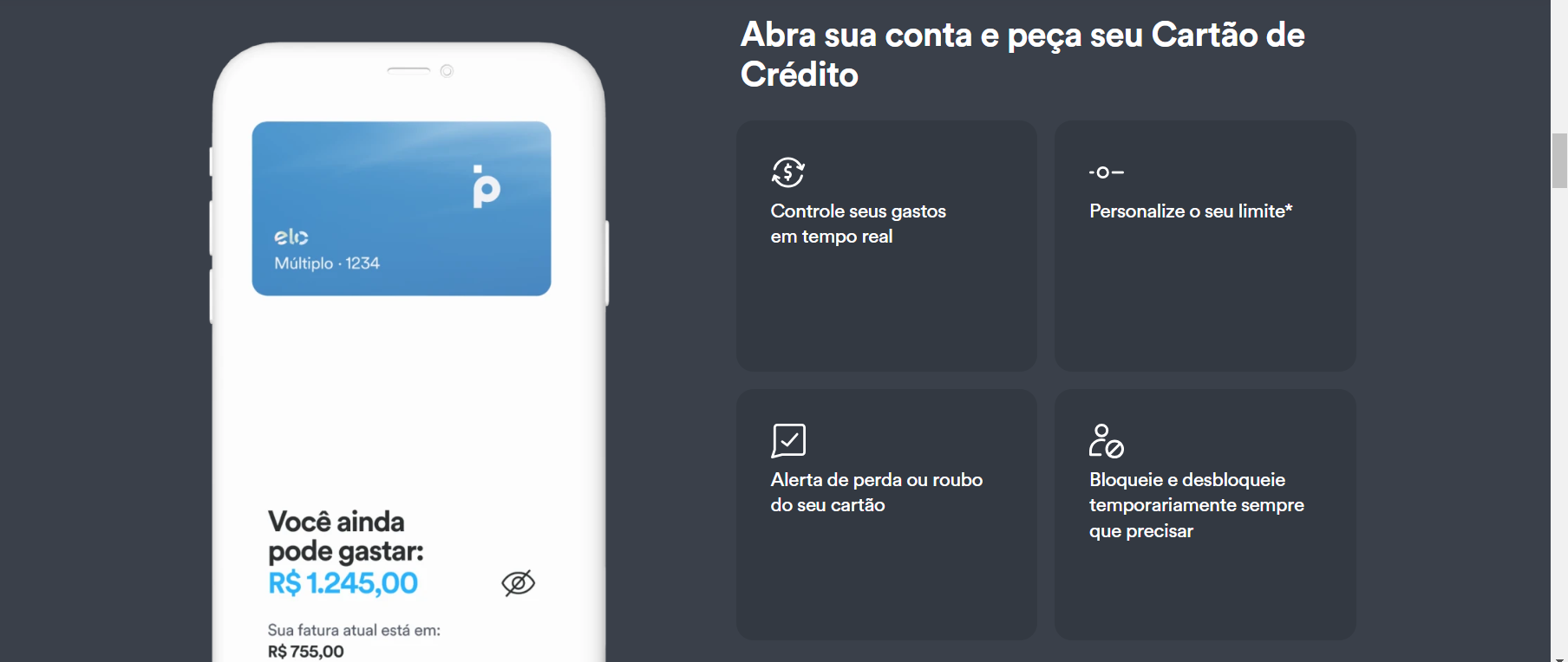 O processo de solicitação de aumento de limite também é simplificado, podendo ser feito diretamente pelo aplicativo.